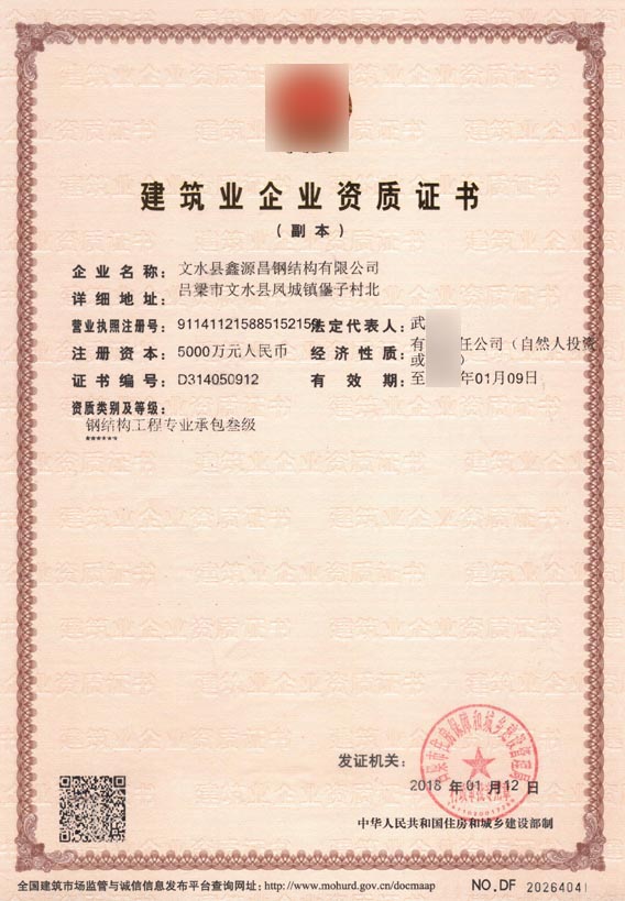 文水縣某公司鋼結構工程專業承包資質